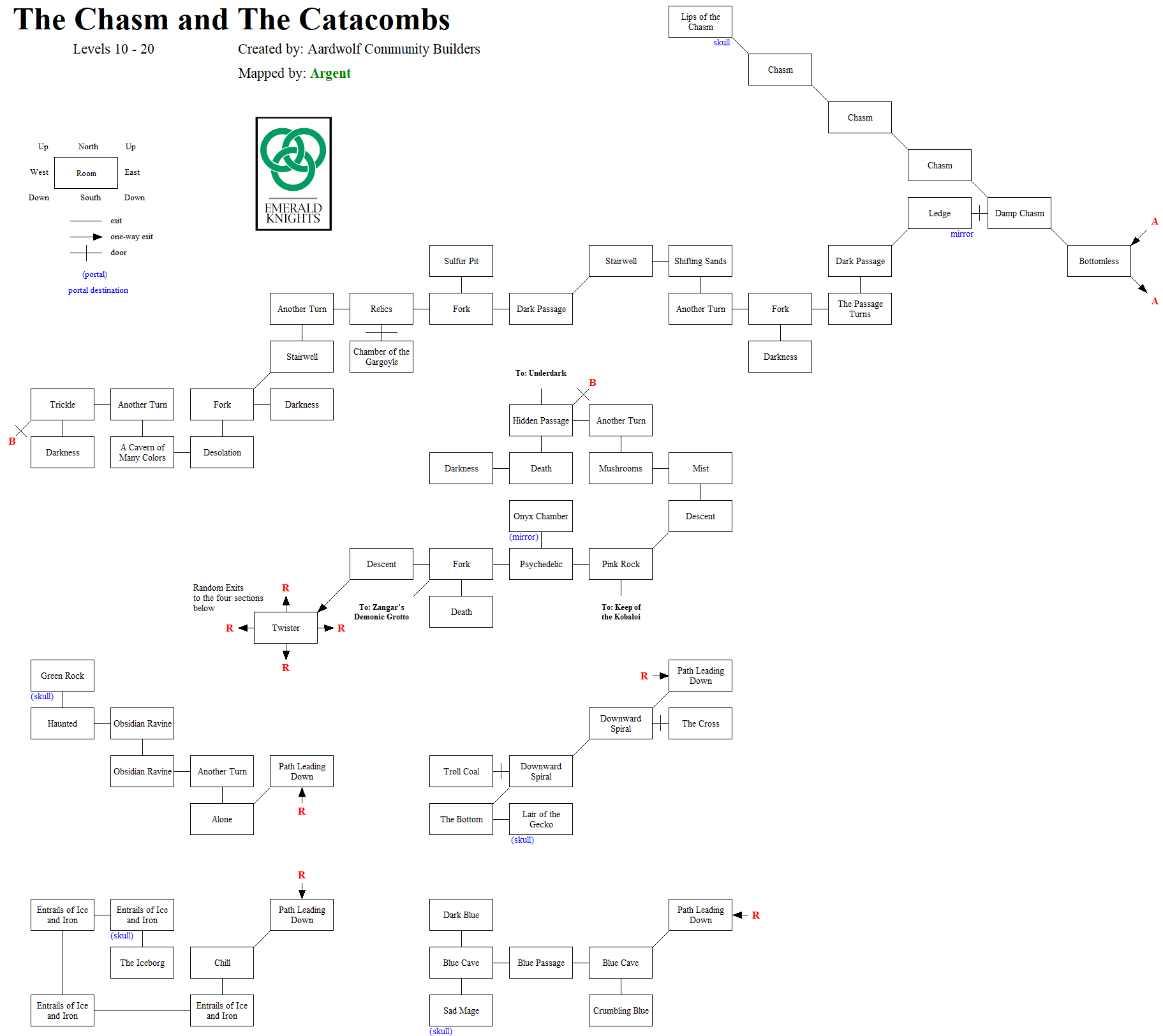 | Chasm and Catacombs | | 10 | 20 | | Aardwolf Community Builders |